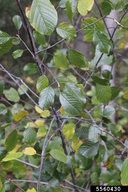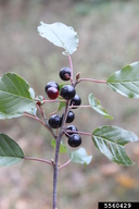 The Glossy Buckthorn - Frangula alnus is a deciduous small tree or shrub that reaches heights of 20-25 feet. Generally growing with multiple erect trunks in a shrubby form, with a stout crown. Originally introduced from Europe about 200 years ago, Glossy Buckthorn has become established in weedy bogs, and other wetland areas. Found as far North as Saskatchewan and Quebec South to West Virginia and Tennessee and West to Idaho and Colorado. The Glossy Buckthorn is considered to be invasive in many areas and is treated as an invasive species in most Mid-Western wetland areas.
